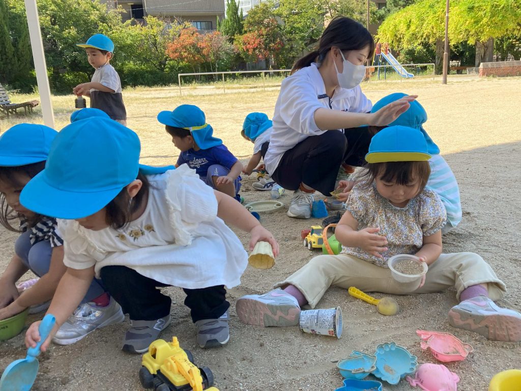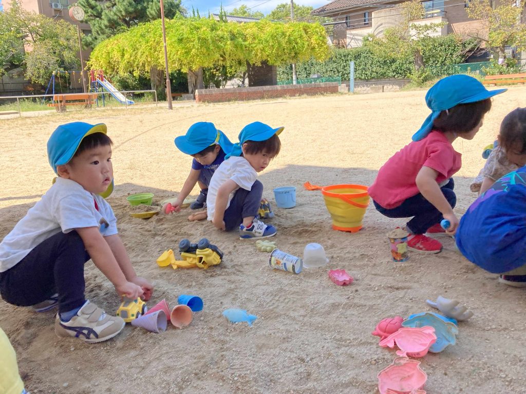 お砂遊びに夢中になっているりす組のお友だちです⚽