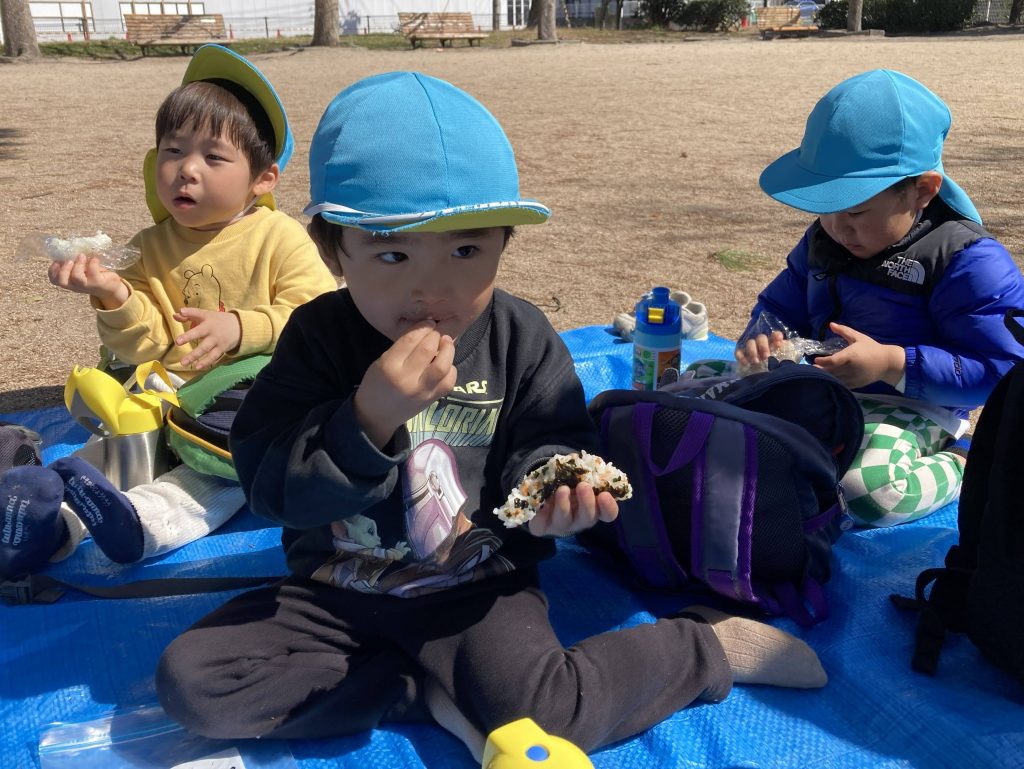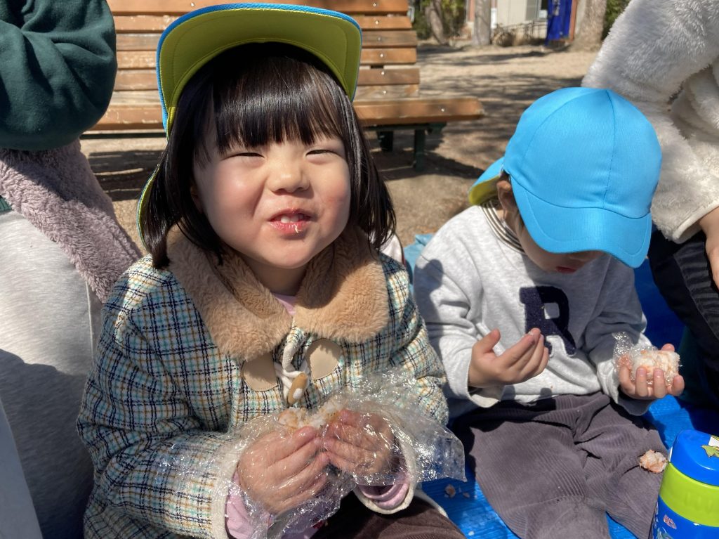 おにぎりを食べるのを待ちきれない子どもでした❗